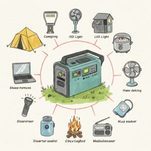 1000Wクラスのポータブル電源で具体的に何ができるのか、どの程度の家電が動くのかについては、以下の記事で詳しく解説していますので参考にしてみてください。